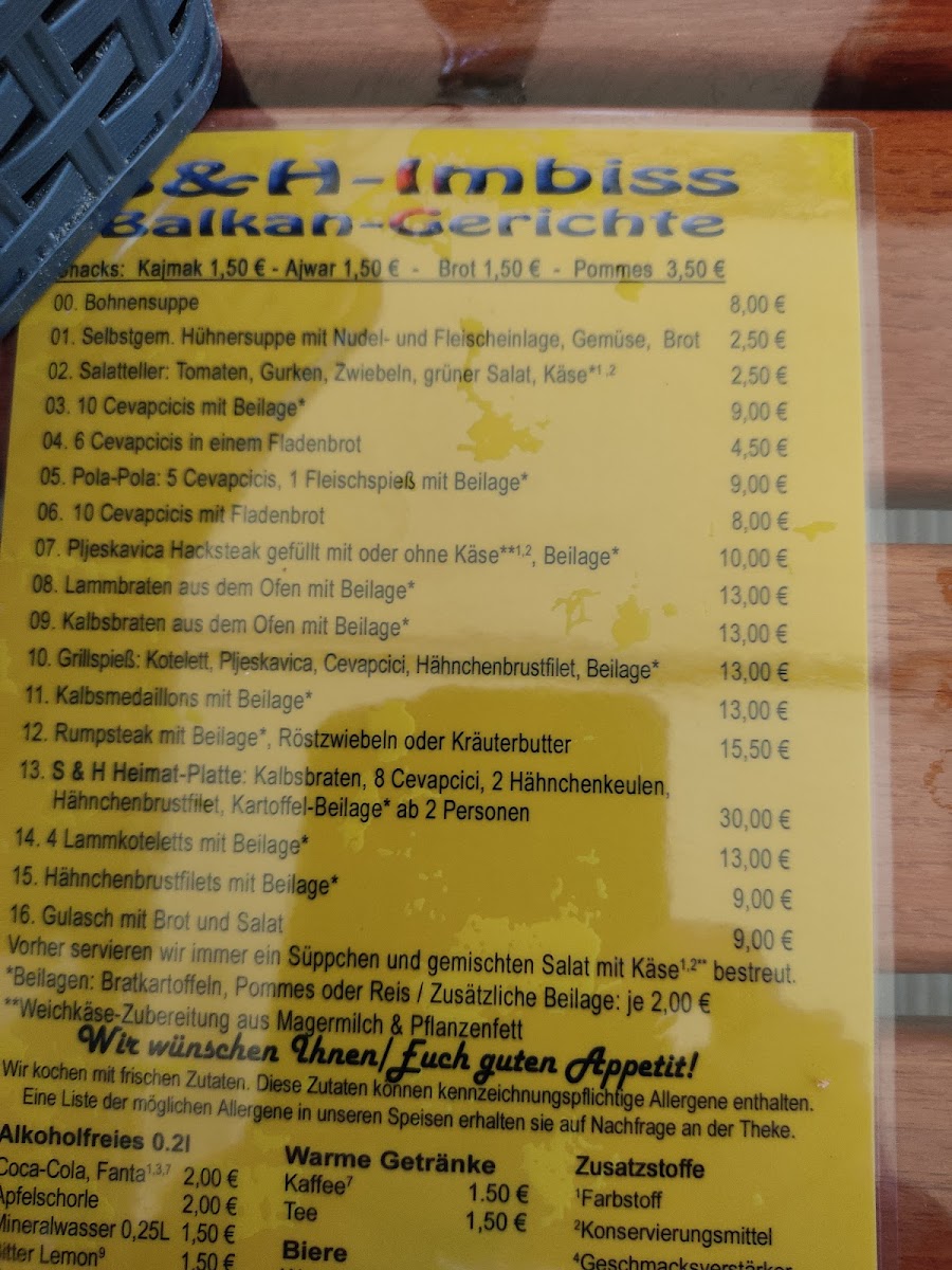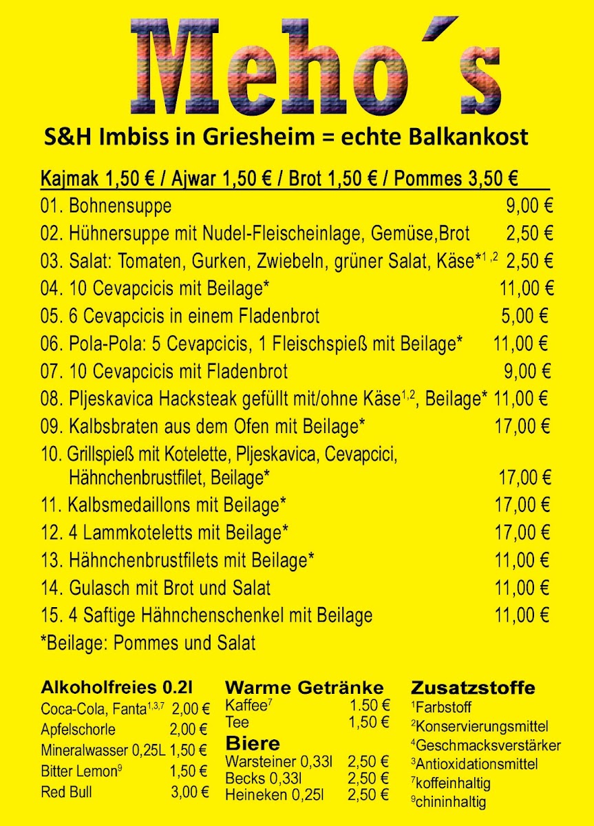 Introducing the vibrant menu of Meho´s S&H-Imbiss, located at Lärchenstraße 78 in Frankfurt am Main, offers a delightful journey through the rich flavors of Balkan cuisine. Diners rave about the freshly prepared dishes, like the renowned cevapcici, served in warm pita with ajvar and onions. Each bite is a testament to quality and authenticity that keeps patrons like Kevin-King Adu and Goran Kalpic returning for more.